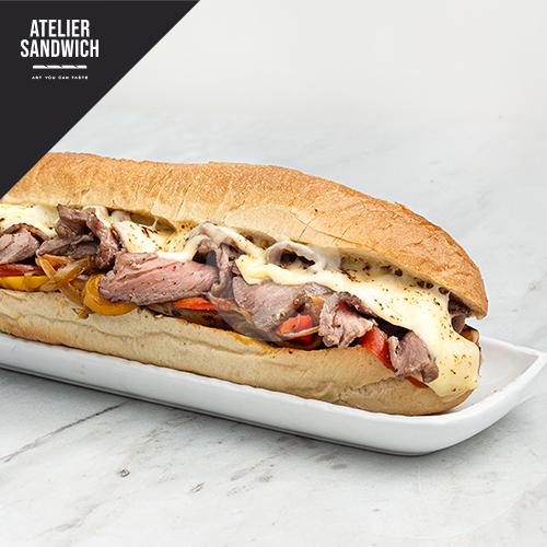 Juicy grilled beef, sautéed onions, peppers and melted cheese, all tucked into a crispy french baguette, with a touch of cinamon, for the ultimate Philly comfort bite