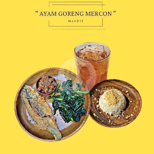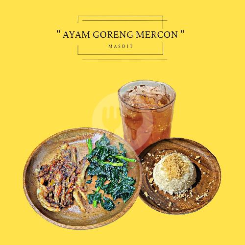 Nasi, Ayam Goreng, Kremesan, Jukut Goreng, Sambel Mercon, Es Teh