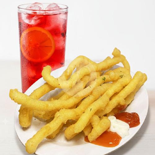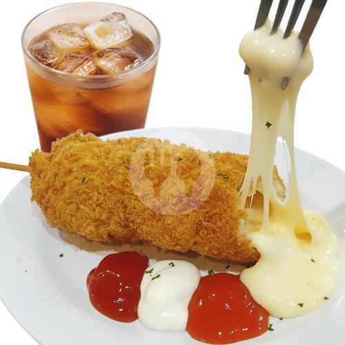 Corndog dengan isian Moza + Ice Tea