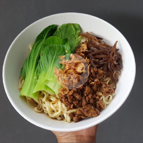 Bakmi TANPA MICIN + Ayam+ Sayur + Jamur kuping + Kuah + pangsit goreng + Daun Bawang + Bawang Goreng + Cabe Acar