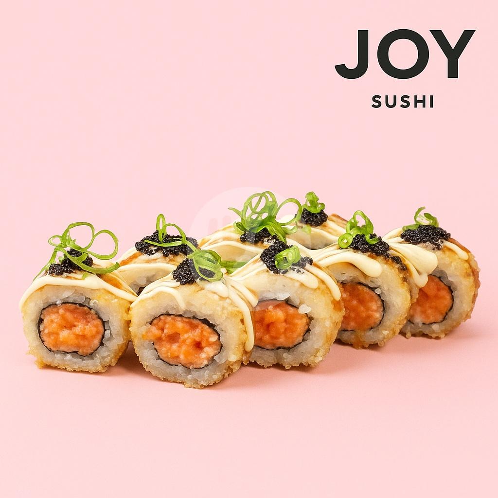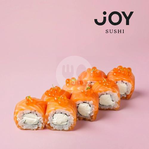 Salmon and cream cheese inside, topped with caviar for a rich, classic taste. served with soy sauce 60 ml, wasabi 25 g, ginger 35 g.