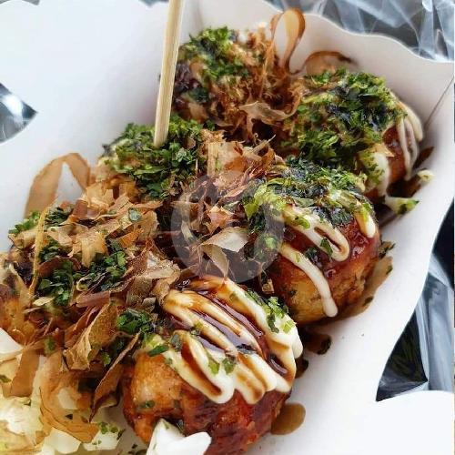 Takoyaki isi 6, dengan saos auntentik khas jepang di taburi serbuk rumput laut dan serutan ikan