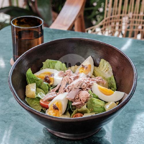 Lettuce Tomatoes Green Beans Potatoes Black Olives Tuna Chunk Eggs And Anchoives With Nicoise Dressing