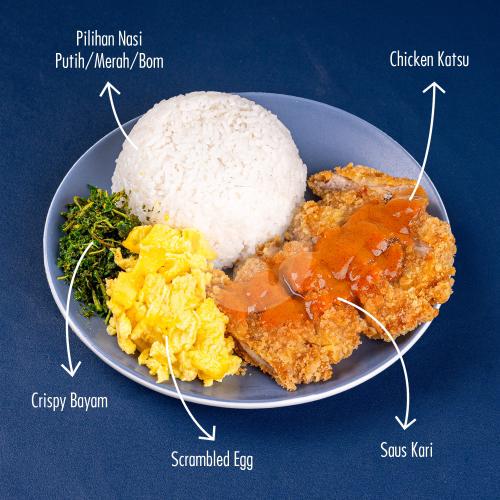 Karinya kuat, rasanya berani! Katsu yang juicy disiram dengan curry sauce dilengkapi pilihan rice dan nikmatnya egg, serta renyahnya Crispy Bayam/Kremes siap ganyang laparmu!