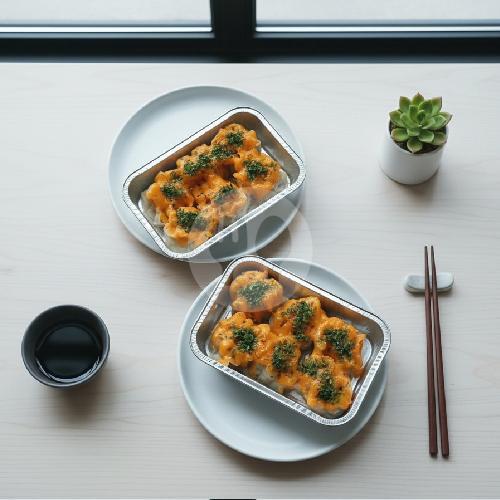 Dimsum dengan saus mentai dan taburan nori diatasnya. Bisa ditambah dengan topping keju atau taburan boncabe level 15.