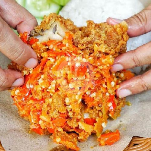 Nasi ayam georek + tahu + orek kacang tempe + terong + sambal merah/ijo