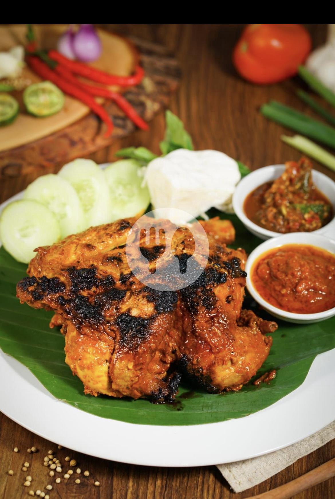 ISI SUDAH LENGKAP : 1 ekor Ayam Bakar Spesial (utuh/potong)+Sambal Pedas bisa pilih Ijo Pedas/Sambal Goreng Terasi/Sambal Mentah Terasi+Lalapan Lengkap Timun Kemangi