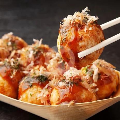 1 porsi 8 takoyaki toping campur dan didalam adonan bisa pilih menggunakan atau tanpa daun bawang