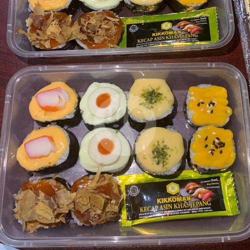 Halal indonesia id18110012859580923. full rumput laut menjadi 10 potong sushi isi chicken stick goreng cucumber size medium. berbagai toping dan saus diantaranya mentai, barbeque, keju, saus sambal, mayones dan thousand island (seperti dipoto)