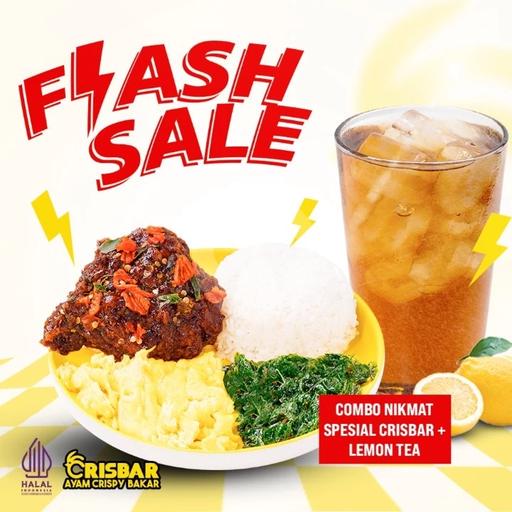 Ayam Crisbar + Nasi + Scrambled Eggs + Spicy Kale + Lemon Tea + Sambal