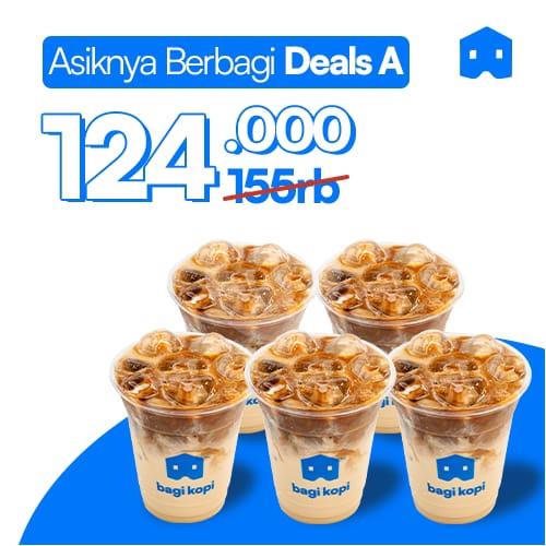 1 Cup Bagi Blangkon Ice/Small (Gula Aren), 1 Cup Bagi Ingatan Ice/Small (Butterscotch), 1 Cup Bagi Kepastian (Salted Caramel), 1 Cup Bagi Kasih Sayang Ice/Small (Pistachio) dan 1 Cup Bagi Akal Sehat Ice/Small (Gula Putih)