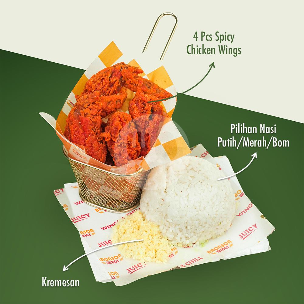 Extra Spicy, Pilihan Nasi + 4 pcs Spicy Chicken Wings + Kremes