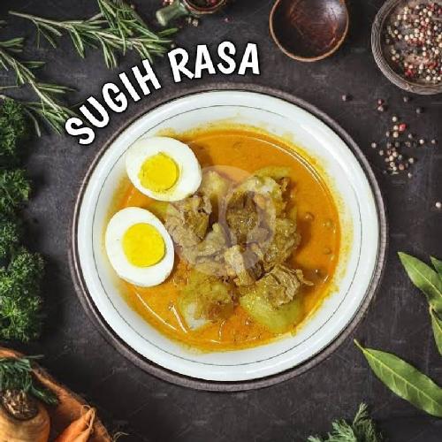 Lontong, Daging Sapi, Kuah Kari, Bawang Goreng, Kecap, Sambal, Kerupuk
