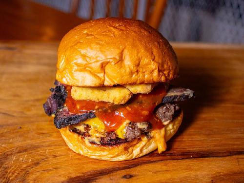 100 pure beef patty with cheddar cheese, UNCLE JACK smoked brisket, crispy onions, caramelized onions, UNCLE JACK BBQ sauce and UNCLE JACK mayo.