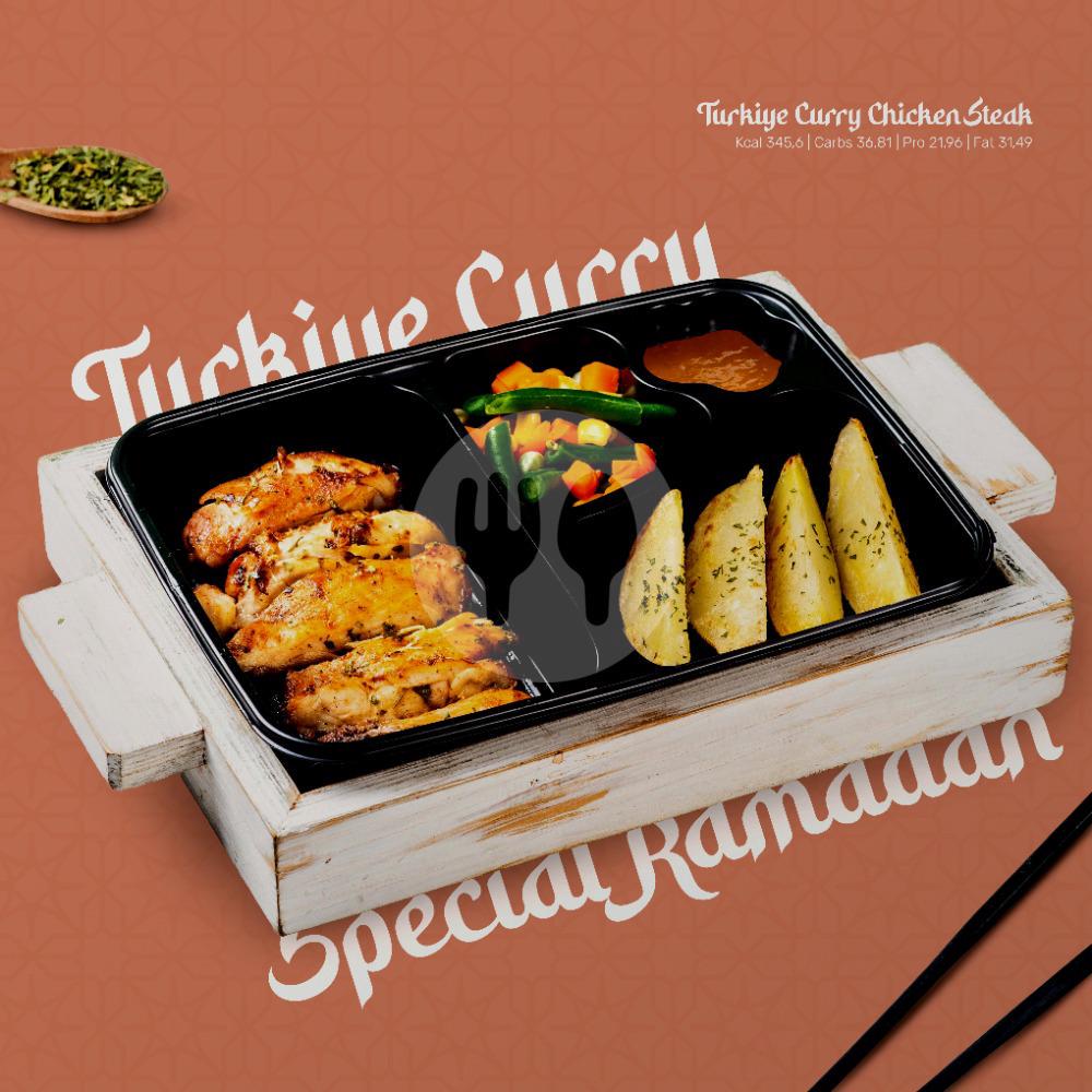Ayam yang dipanggang, Sayuran, Kentang, dan sauce Curry khas Dietgo