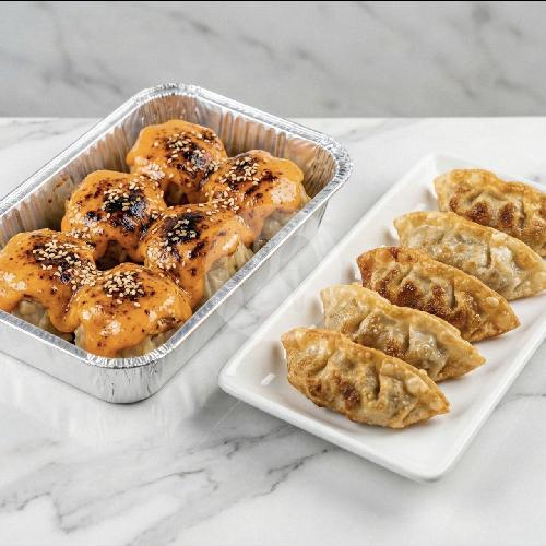 Duo menu favorit dalam satu paket! Nikmati Dimsum Mentai (6pcs) yang juicy dan smoky, plus Gyoza Ayam (6pcs) yang super gurih. Cocok buat sharing tapi lebih cocok lagi buat makan sendiri!