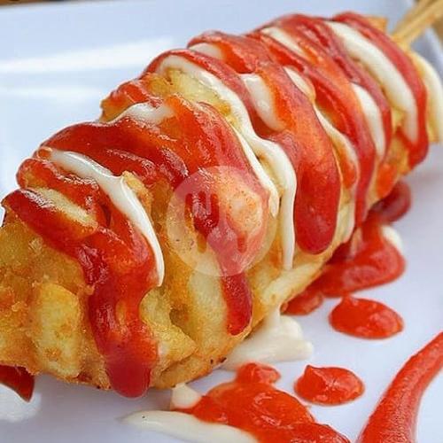 Corndogs Kentang dengan Sosis mozarella di balut dengan kentang, manis gurih, mengandung susu enak bergizi dan bikin kenyang. dikirim matang