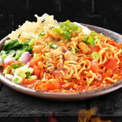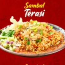Mie Cobek Sambal Bakar Varian Terasi Rasa Enak Dan Mengenyangkan Di Lengkapi Toping Ayam Bakso Dan Sosin Juga Kerupuk Pangsit