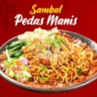 Mie Cobek Sambal Bakar Varian Pedas Manis Dengan Rasa Yang Enak Toping Ayam Baso dan Sosin Juga Kerupuk Pangsit