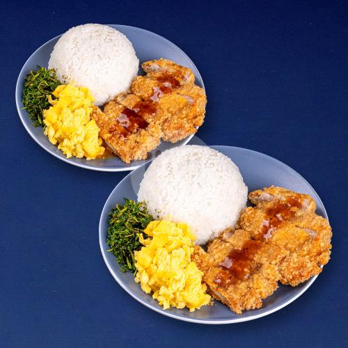 Berdua Lebih Hemat (Nasi, Chicken Katsu, Pilihan Saus, Kremes) + (Nasi, AUS Beef, Pilihan Saus)