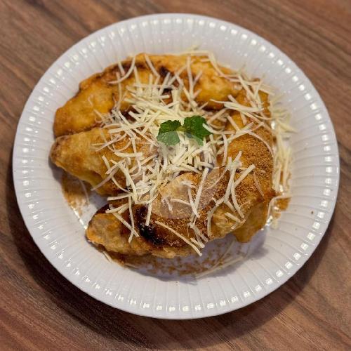 Pisang Goreng Dengan Topping Keju Dan Taburan Palm Sugar