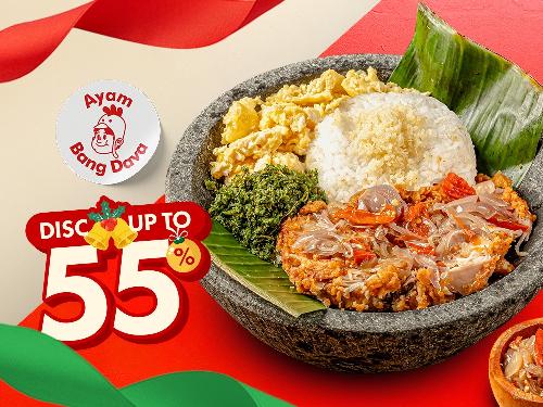 Kenikmatannya double sensasinya maksimal. (Pilihan Nasi + Ayam Geprek Sambal Matah + Telur + Crispy Bayam/Kremes)