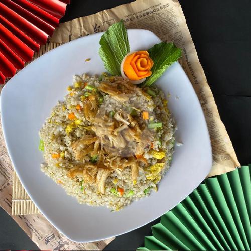 Nasi yang di goreng dengan campuran telur, sayur dan daging ayam.