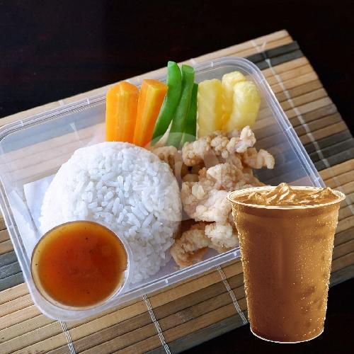 Paket Satu Porsi Nasi Bistik Ayam Lengkap Dengan Pilihan Minuman Yang Menyegarkan