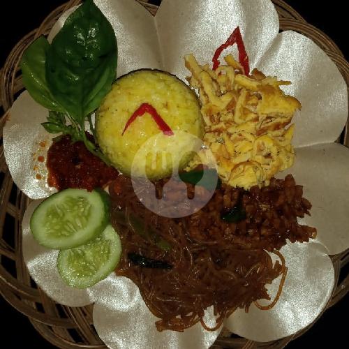 Nasi Uduk + Orek Tempe + Bihun Goreng/Mie Goreng + Telur Dadar + Sambel + Timun + Kerupuk + Bawang Goreng