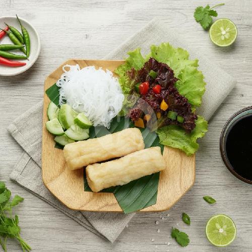Pempek berbentuk bulat memanjang seperti sosis, terbuat dari ikan tenggiri