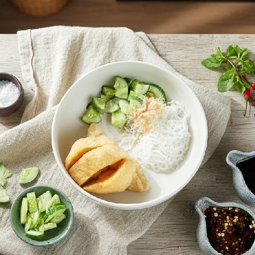 Pempek yang menyerupai kantung dengan isian telur di dalamnya