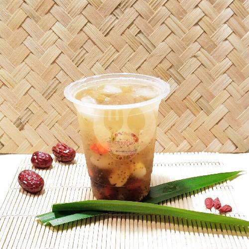 Baik untuk kesehatan kulit kaya akan collagen. premium peach gum dessert dengan berbagai isian: peach gum, snow bird nest, jamur salju, jali-jali, goji berry, angco, longan, kundur, gula, organic black chia seeds, dan Ice. Jika Ingin Hangat Dinote ya