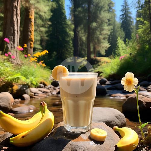Terbuat dari buah Pisang, susu, gula, es batu dan sedikit air.