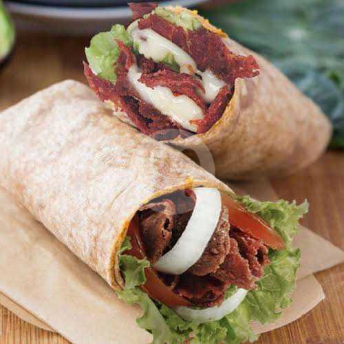 (Tulis Catatan Pedas Ga Nya Ya)Tortila Jumbo + Letuce, Saos Tomat,Cabe,Mayo+ Irisan Daging Panggang
