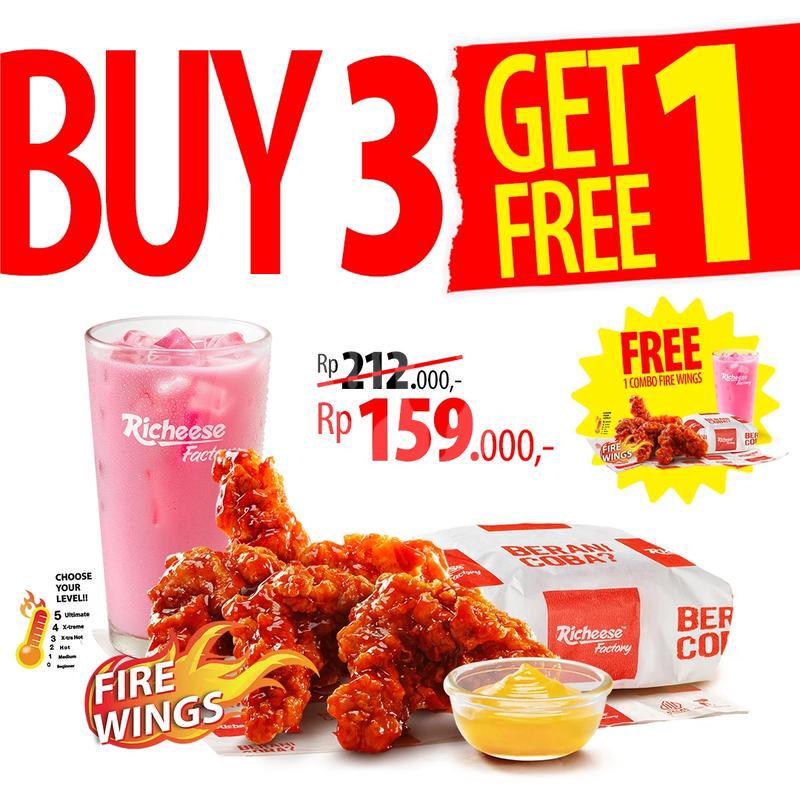 16 Pcs Fire Wings + 4 Rice + 4 Medium Drink + Cheese Sauce