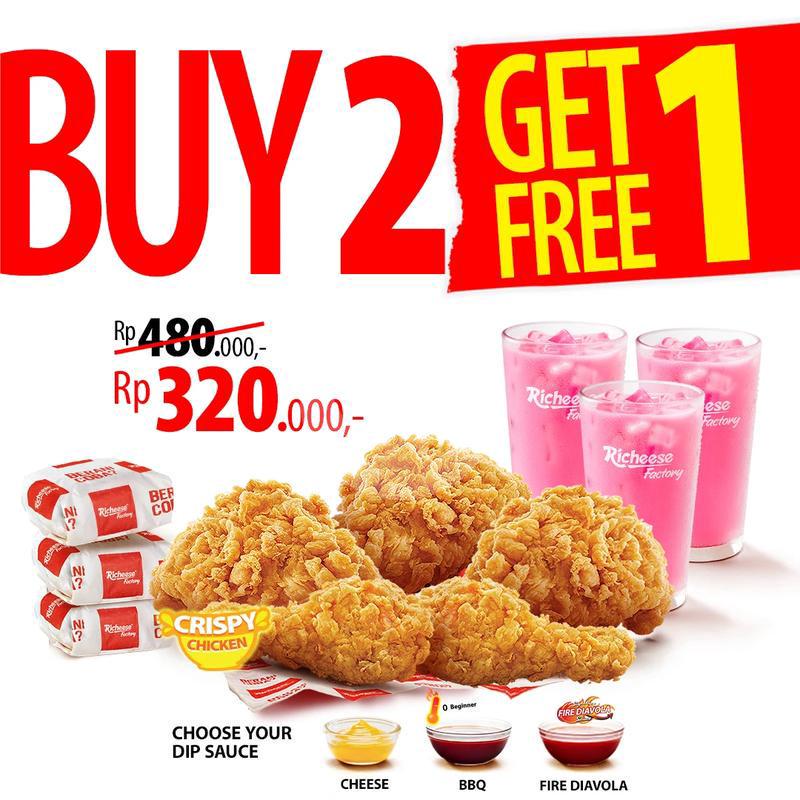 4 Crispy Chicken + 4 Rice + 4 Medium Drink + Cheese Sauce / Fire Diavola Sauce / BBQ Sauce Lev-0