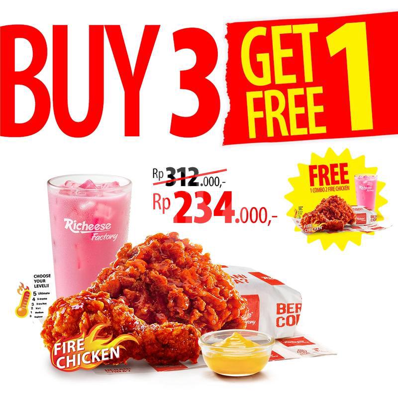 5 Pcs Fire Chicken + 3 Rice + 3 Small Drink + Cheese Sauce.