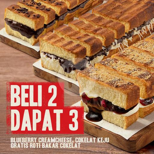 Roti bakar isi cokelat keju yang gurih dan nikmat, cocok disantap kapan saja.