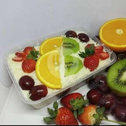 Buah Semangka + Melon + Apel + Pear + Naga Yang Di Siram Saus Mayonaise