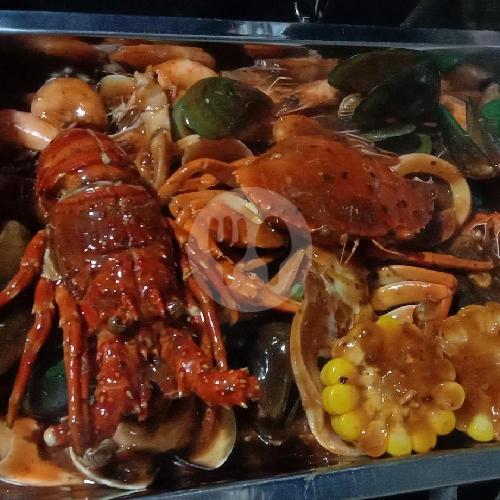 Paketan kumplit lobster dan kepiting Isinya berbagai jenis Macam kerang, cumi, udang dan sayuran rasa (saus padang, saus tiram, saus asam manis) bisa pedas / tidak pedas