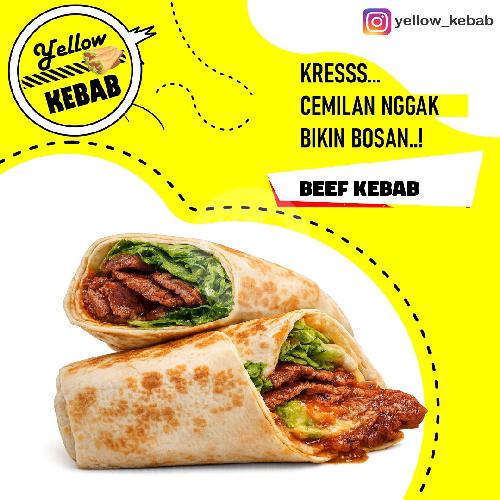 Kebab dengan isi Daging sapi olahan,Sayuran (Letuce, Curry, Bawang Bombay, Kol Ungu) Dan Saus Pilihanmu. (Jangan lupa beri note Pedas / Tidak)