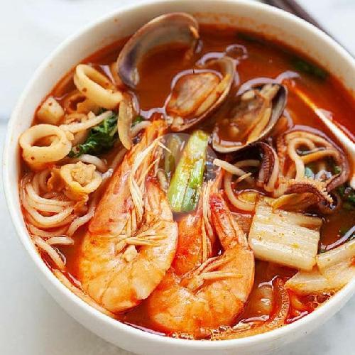Mie Kuah Seafood Ala Korea Dengan Topping Cumi,Udang Dan Kerang