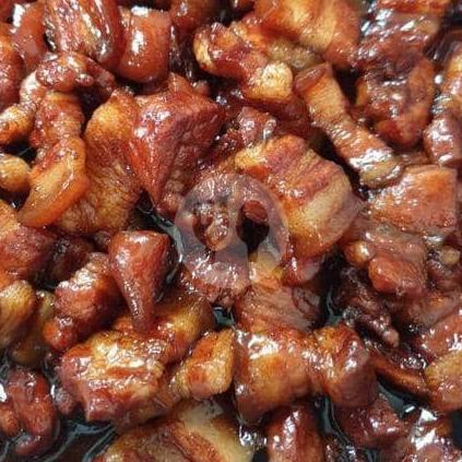 Babi kecap : daging babi pilihan, empuk di dalam, bumbu kecap meresap sempurna + acar + sambel