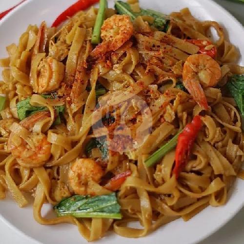 Mie kwetiau lembut, saus manis gurih, taburan ayam dan sayuran segar.