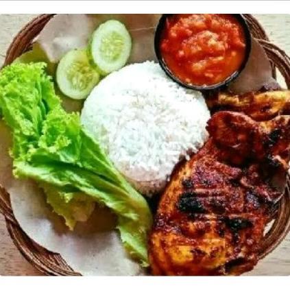 Ayam Bakar, nasi putih, lalapan segar, sambal pedas ditambah Terong, Tahu, Tempe