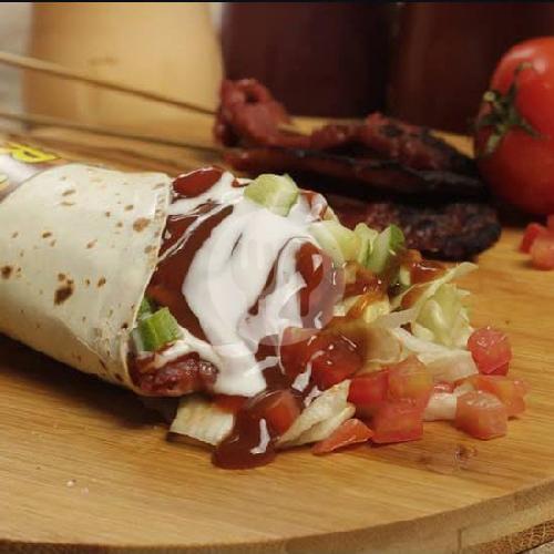 Isisan Beef Dengan Selada Tomat Kyuri Dan Bombay Di Lumuri Saus BBQ Dan Mayonaise Khas Akubabs