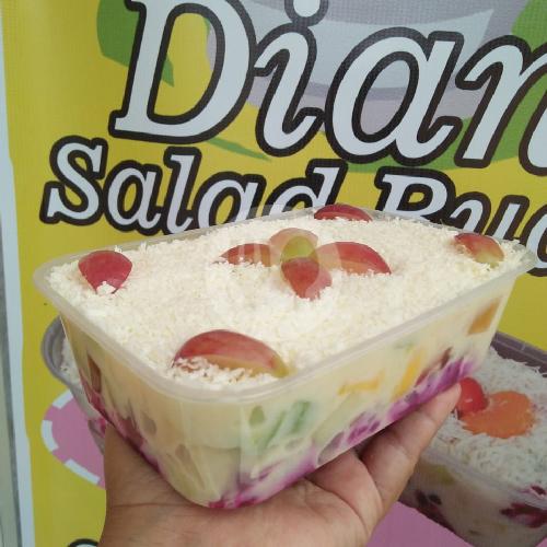 Salad dengan buah pilihan yaitu apel , pir , melon , buah naga , Mangga, anggur , dan dengan pilihan toping keju .