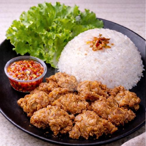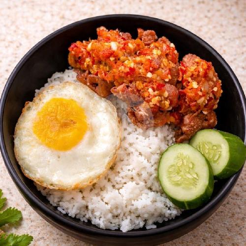 Nasi + Telur Ceplok + Kulit Krispi + Sambal Bawang + Timun
