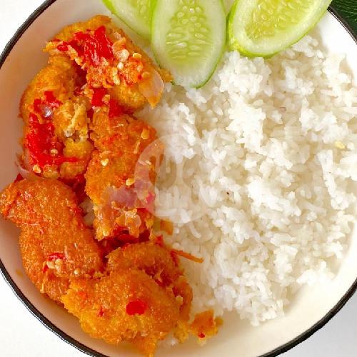 Nasi + Nugget ayam Yang Digeprek Dengan sambal Bawang. Yang Diuleg Dadakan