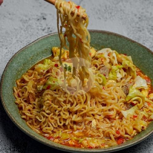 Mie Instant Goreng + Orak-arik telur+sayuran+ Topping Bakso Dan Sosis.Pedes Dan seger